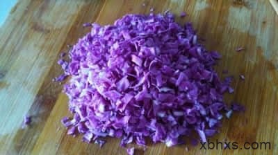 6.甘蓝切末,用白糖,盐,白醋腌制。