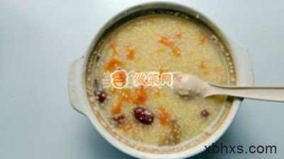 小米养胃,大多数的时候家中煮的杂粮粥小米是必备的原料之一,南瓜有丰富的维生素和果胶,也是对肠胃有好处的,加了点红枣就更香甜了。