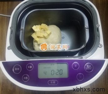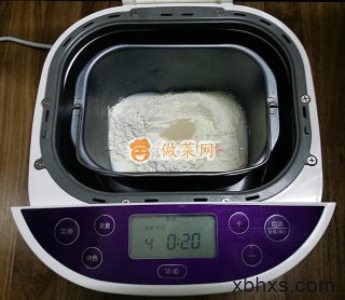2、将主料除黄油以外的食材放入面包桶、启动揉面程序