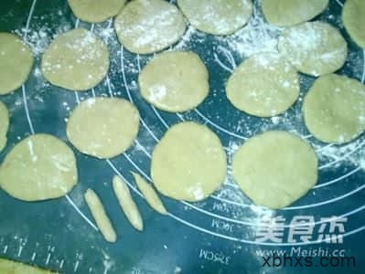 5.将面团分别擀成圆片,剩下的不足15克的面团分成三等分,搓成条。
