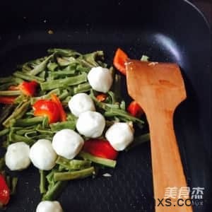 8.加入鱼蛋,加入盐和蚝油,加点水,盖上盖,焖煮3~5分钟便可