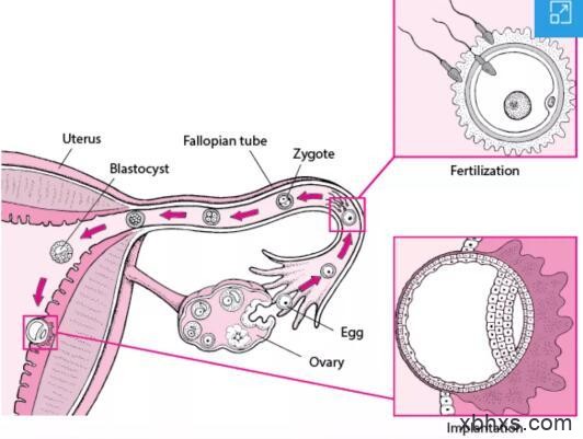 注:fertilization:受精;implantion(着床)