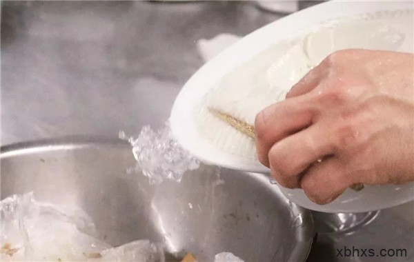 2、用竹签悄悄压住蒸好的豆腐,一翘一压重复几次,疾速抖落蒸汁。