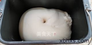 1、除黄油处,把其他面团的材料放入面包机,揉面15分钟,按停止键,放入黄油,重新开启揉面功能,揉到程序完成。