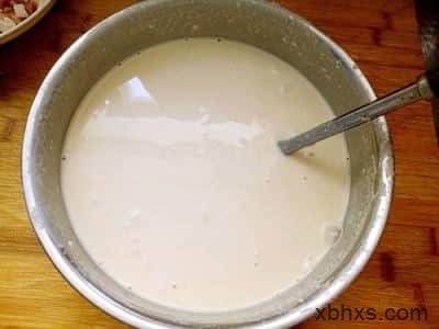 9.面糊不要太稠,舀起来要能流畅滴落下来,但也不能太稀,太稀挂不住