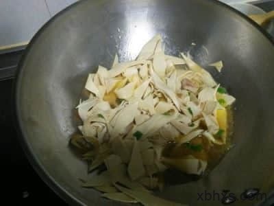5.下干豆腐,加料酒,酱油炒一下