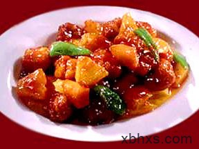 1、猪肉片成菱形块.用精盐、酒腌入味,裹上鸡蛋液和淀粉;油烧至六成熟,把肉炸至五成熟,倒入漏勺沥油;